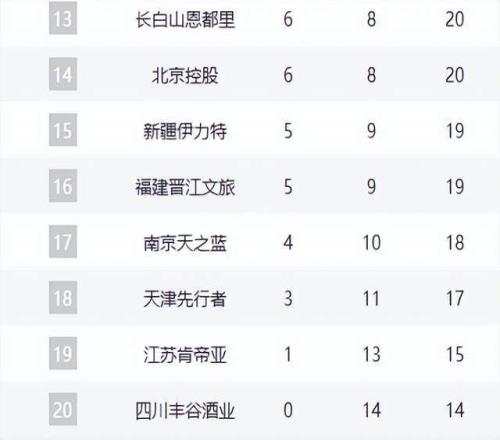 天津、江苏和四川位列18-20位。天津队最近十场拿下三场,正逐步摆脱困境,展现出一定的复苏迹象。